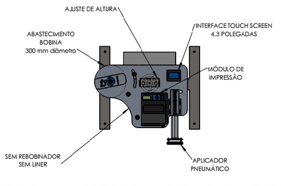 - Tipo de aplicador: pneumático com fixação da etiqueta por vácuo
